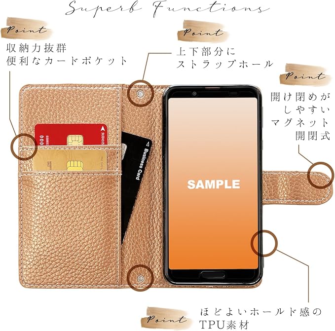 シンプルスマホ6 A201SH ケース 手帳型 カバー シンプルスマホ 6 手帳型ケース 手帳 softbank スマホケース スマホカバー シンプルスマホ6ケース シンプルスマホ6カバー ハンドあり上品 【NB】 ゴ