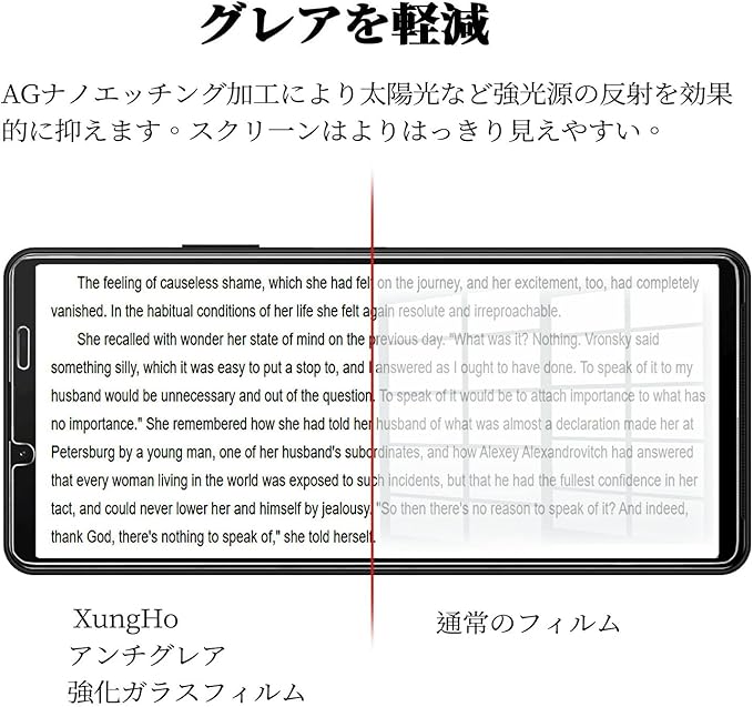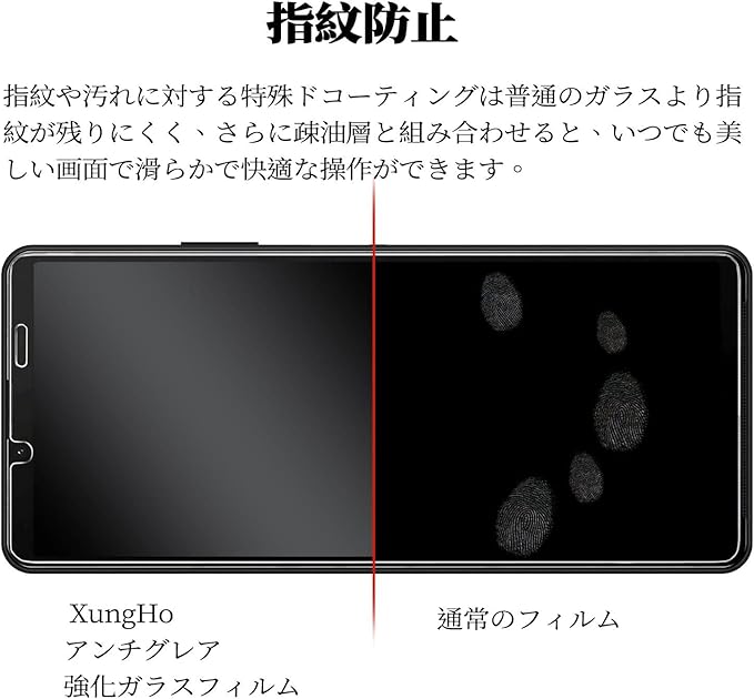 『アンチグレア』XungHo独自の反射防止コーティングの加工で、ディスプレイの表面に太陽光や蛍光灯などの反射を抑えます。視認性を向上させて画面が見えやすくなり、目の負担を軽減できます。更にサラサラ手触りで指紋の跡が残りにくく、指のすべりが滑らかでゲームをするのに適しています。