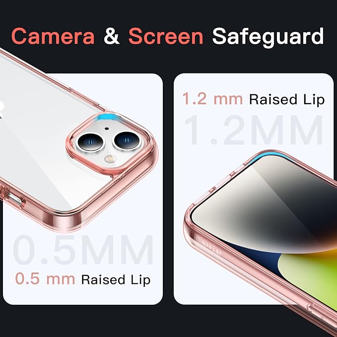 JETech iPhone 14 6.1インチ用 保護ケース 黄ばみなし 衝撃吸収 バンパーカバー 傷つけ防止 クリアバック (ローズゴールド)