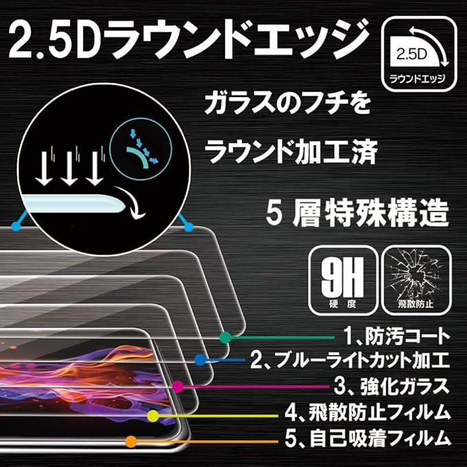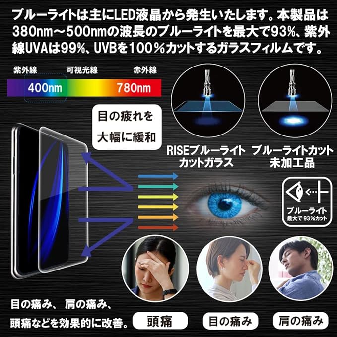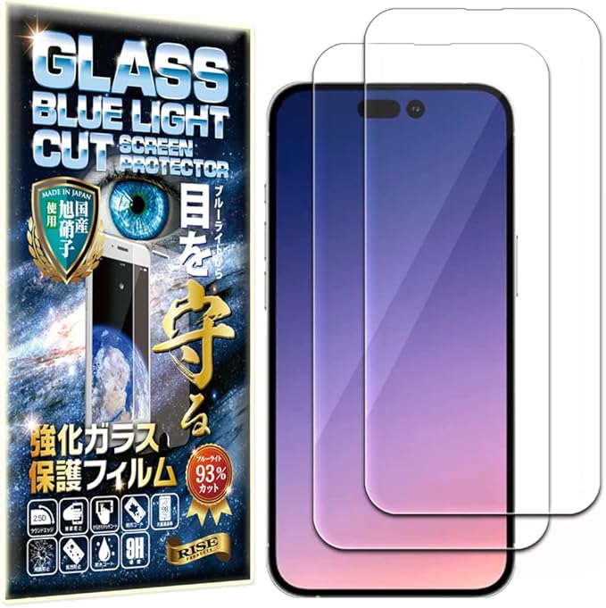 【ブルーライトカット 93%】【2枚】【RISE】 ガラスフィルム フィルム iPhone 14 Pro 用 保護フィルム 強化 ガラス 高透過 高光沢 日本製 旭硝子 硬度9H 2.5Dラウンドエッジ 自動吸着 気泡ゼロ 飛散防止 指紋防止 撥水撥油 3D タッチ For iPhone 14 Pro