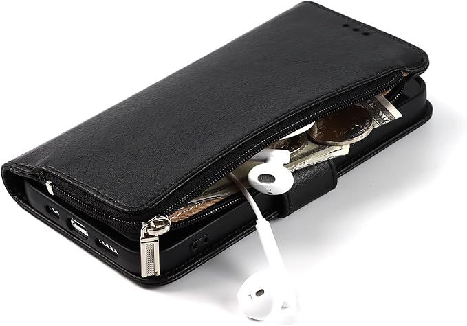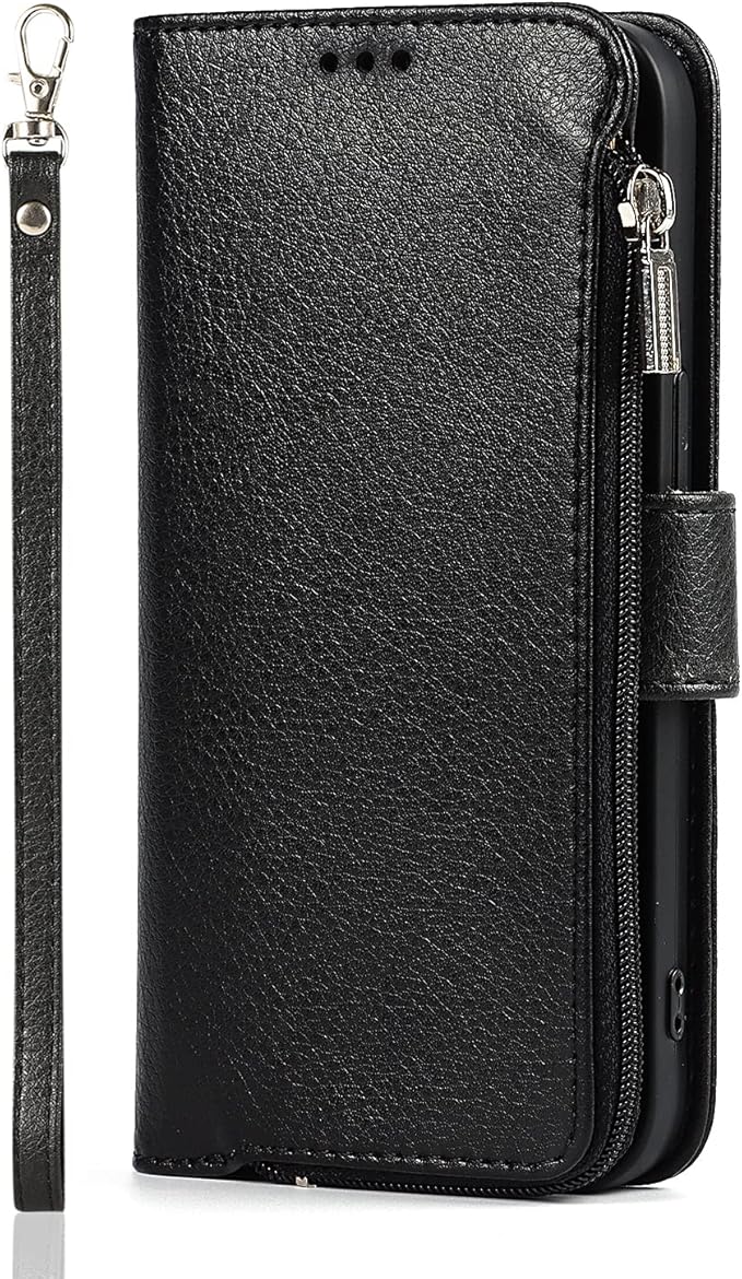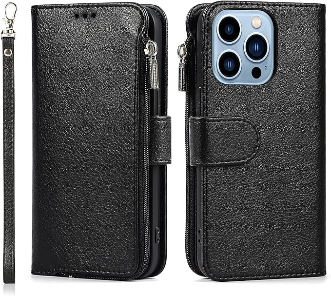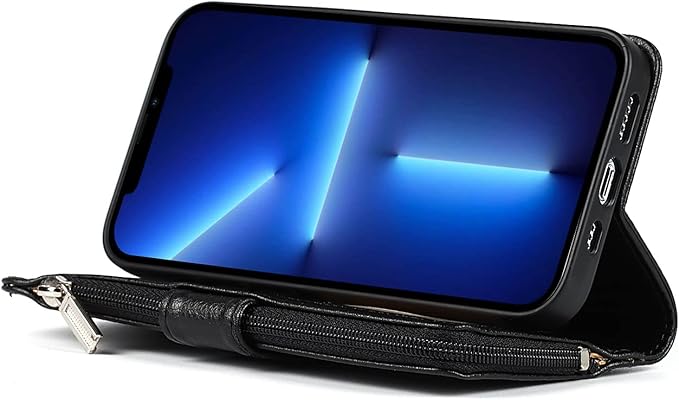 Eastwave アイフォン 13 Pro Max ケース iPhone 13promax ケース 手帳型 iPhone13promax 財布型 手帳 背面 ICカード コインポケット ストラップ付き カード 収納 小銭入れ ファスナーポケット付き PUレザー 5色 ブラック