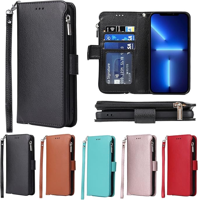 Eastwave アイフォン 13 Pro Max ケース iPhone 13promax ケース 手帳型 iPhone13promax 財布型 手帳 背面 ICカード コインポケット ストラップ付き カード 収納 小銭入れ ファスナーポケット付き PUレザー 5