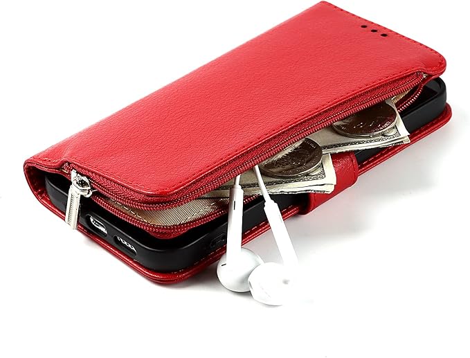 Eastwave アイフォン 13 Pro Max ケース iPhone 13promax ケース 手帳型 iPhone13promax 財布型 手帳 背面 ICカード コインポケット ストラップ付き カード 収納 小銭入れ ファスナーポケット付き PUレザー 5色 レッド