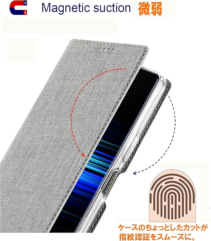 ViLi Xperia 5 IV SO-54C SOG09 対応 手帳型 マグネット式 薄型 スリム 軽量 シンプル スタンド機能 カード収納 付き ケース グレー CXP5IV-BFVL-GY