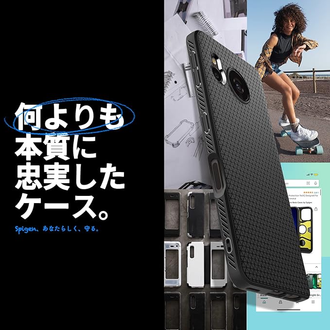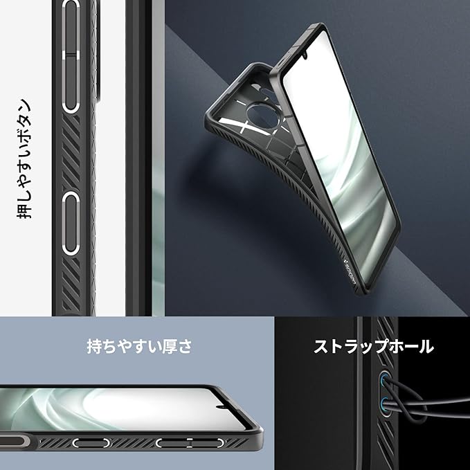 Spigen AQUOS sense7 ケース TPU[SH-53C / SHG10 / SH-M24対応]ストラップホール付き 滑り止め 耐衝撃 リキッド・エアー ACS05438(マット・ブラック)