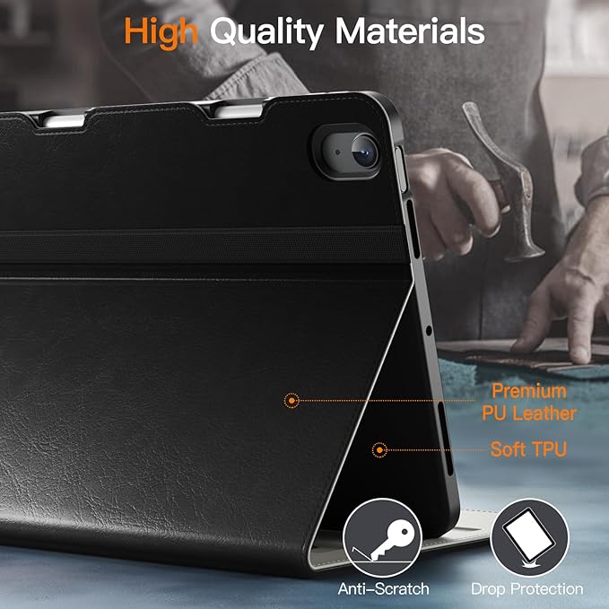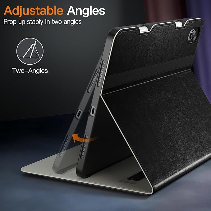 JETech iPad Air 11 インチ M3/M2 (2025/2024)、iPad Air 5/4 ケース (10.9 インチ、2022/2020モデル、 第5/4世代用)、PU レザー フォリオ タブレット保護カバー Pencil収納可能 & ポケット、マルチアングル表示 (ブラック)