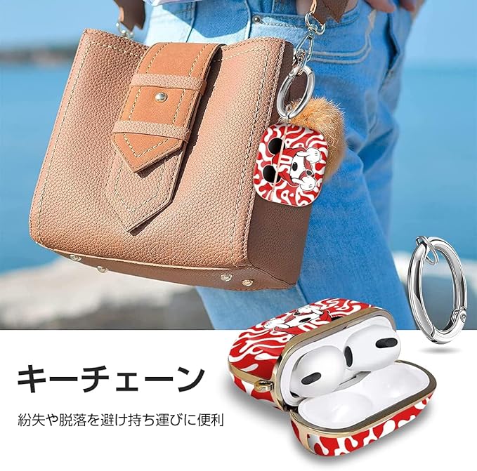 AirPods 3 ケース AirPods 第3世代 ケース エアーポッズ 3 ケース イヤホン保護ケース 可愛い おしゃれ AirPods 3用 保護カーバ カラビナ付き ワイヤレス充電対応 軽量 耐衝撃 防水 防塵 紛失防止 imdプロセス製造 AirPods ケース 第3世代 (赤い色)