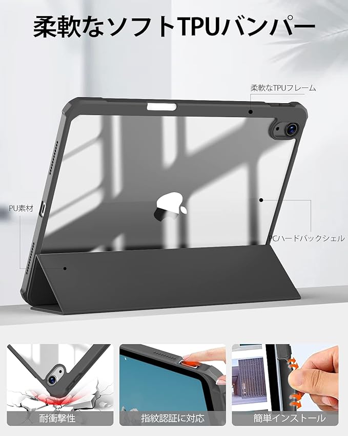 【対応機種】New iPad Air 11インチ(M2) 2024年発売 / iPad Air 第5世代 Air5 2022年発売 / 第4世代 Air4 2020年発売 10.9 インチ (モデル番号:A2588、A2589、A2591、A2316、A2324、A2325、A2072)、他のどのiPadモデルにも対応しておりません。(ご注文した時に、ぜひともお手元のiPadのモデルをご確認ください。)
