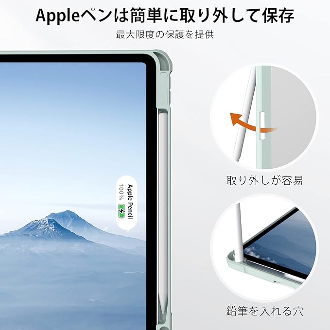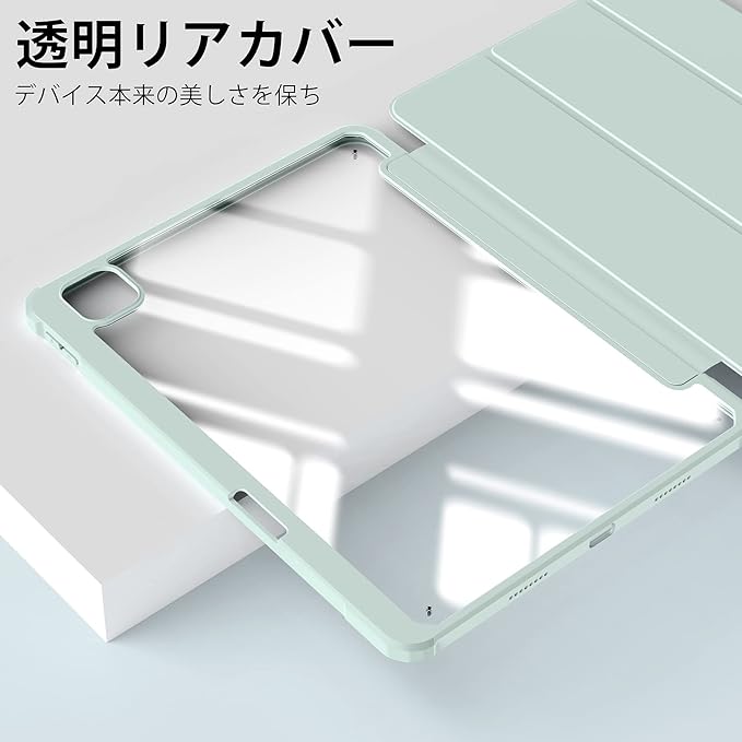 KenKe iPad Pro 11 ケース 2022/ 2021/ 2020 透明バックカバー 軽量 薄型 傷つけ防止 PU合成レザー Apple Pencil 収納可能 Apple Pencil 2 ワイヤレス充電対応 三つ折スタンド スリープ機能 iPad Pro 11インチ ケース 第4/3/2世代対応 (グリーン)