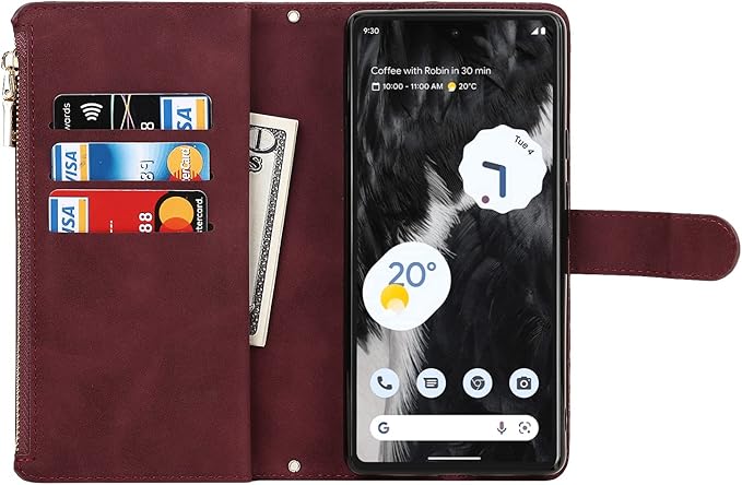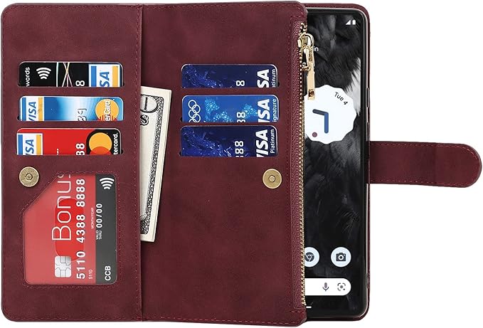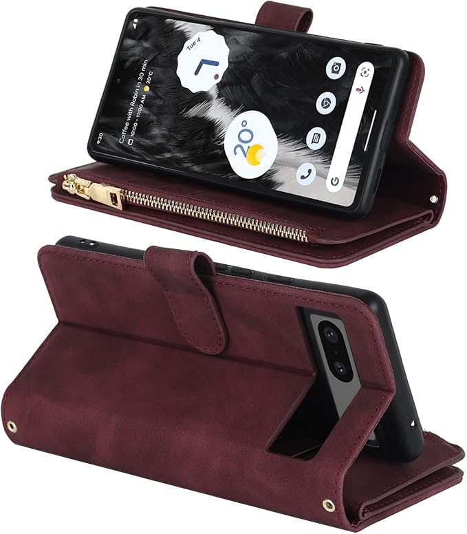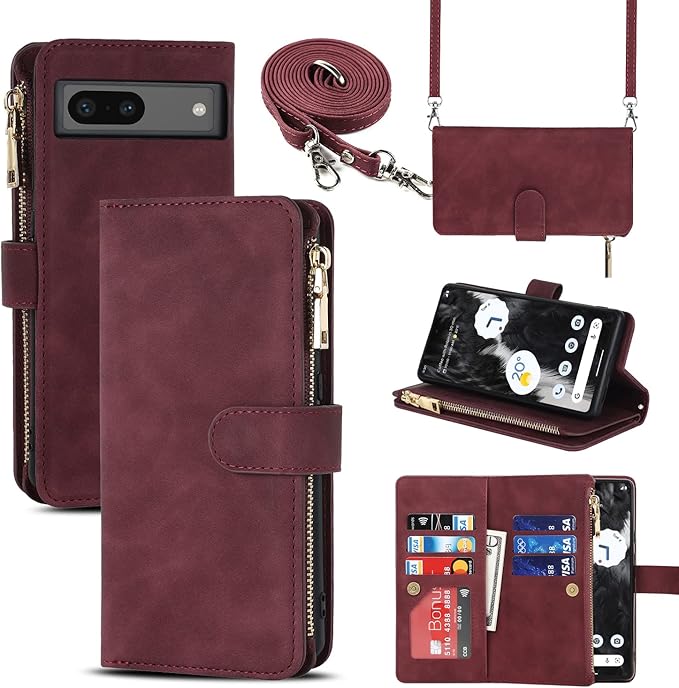 Pelanty for Pixel 7A 縄掛けケース手帳型 携帯カバー 肩掛け斜めがけ ショルダー 合成皮革+TPU マグネット Google Pixel7a 財布型カバー ICカード お札入れ小銭入れ大容量 収納ポケット スタンド機能 グーグル ピクセル7A 6.1インチ ストラップ付き 落下防止 耐衝撃 全面保護(肩縄付き-ワインレッド)