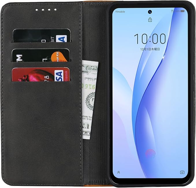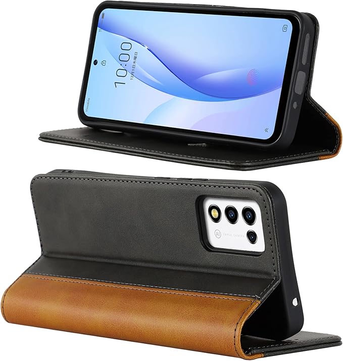 ZTE Libero 5G III ケース zte リベロ 5g iii 手帳型 a202zt カバー ZTE Libero 5G III A202ZT 手帳ケース zte libero 5g iii case zouzt 合成皮革 財布型 カード収納 ベルトなし マグネット スタンド 4色 ブラック+イエ
