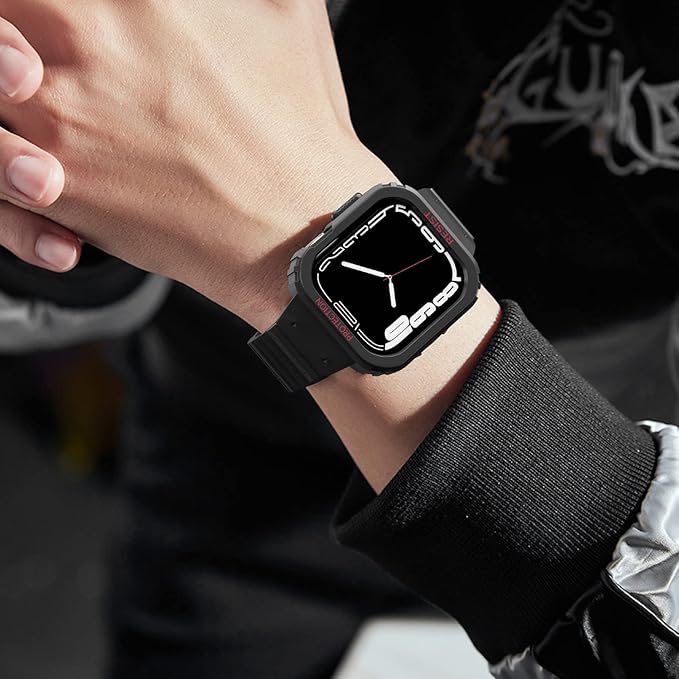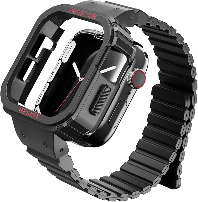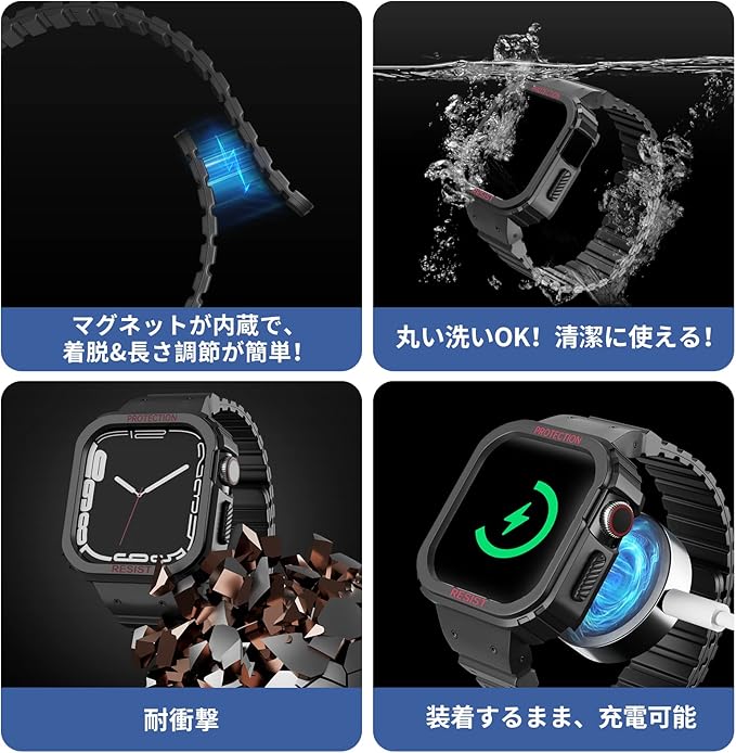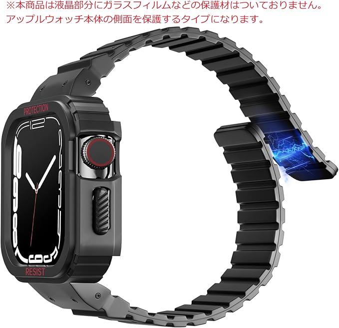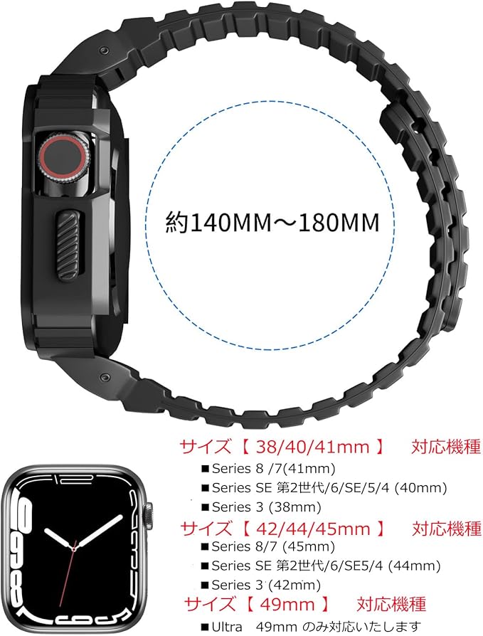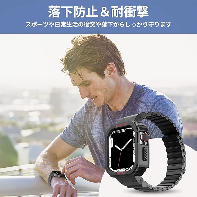 YKDJOP コンパチブル Apple Watch バンド 49mm 45mm 44mm 42mm 41mm 40mm 38mm 耐衝撃 保護カバー ケース スポーツバンド 一体型 マグネット 磁吸引式ループ 自由調整 装着簡単 アップルウォッチ バンド 対応 iWatch Series Ultra/SE2/SE/8/7/6/5/4/3/2/1