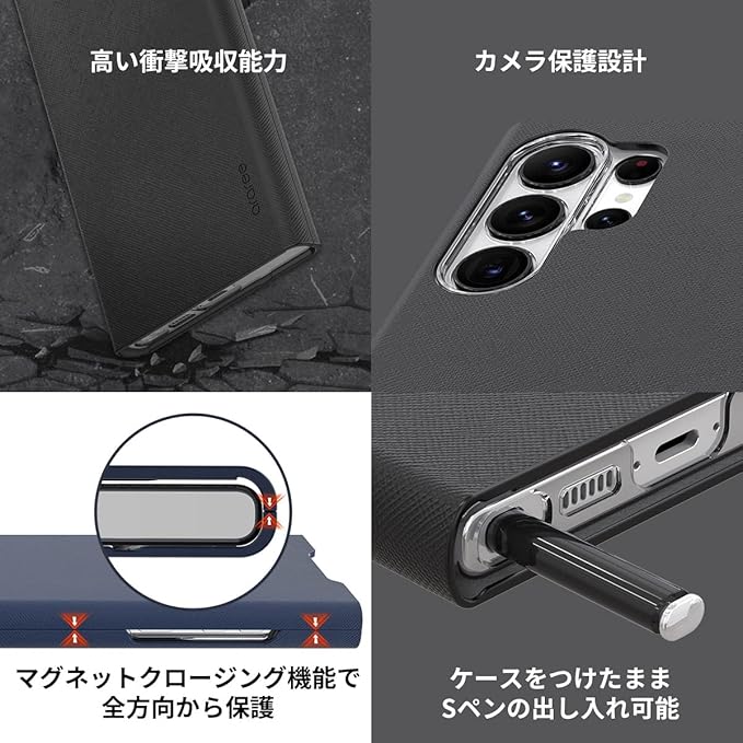 araree Galaxy S23 Ultra 対応 手帳型 ケース [ プレミアムフェイクレザー マグネット クロージング 留め具 カード収納 スタンド機能 フリップ ケース ワイヤレス充電対応 ] サムスン GalaxyS23 レザー