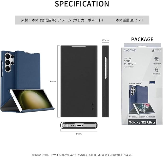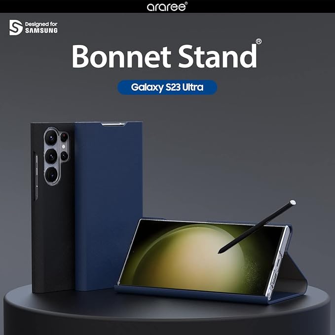 araree Galaxy S23 Ultra 対応 手帳型 ケース [ プレミアムフェイクレザー マグネット クロージング 留め具 カード収納 スタンド機能 フリップ ケース ワイヤレス充電対応 ] サムスン GalaxyS23 レザーケース Bonnet Stand アッシュブルー AR25105S23U SC-52D / SCG20 【SAMSUNGの公式認証 国内正規品】