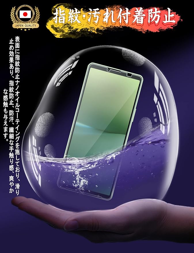 【最高硬度9H?飛散防止】日本旭硝子素材を採用、業界最高レベルの9H硬度、ハードコーティング技術により、衝撃を緩和し画面の破損を最低限まで抑え、すり傷や指紋からもスクリーンをしっかりと保護します。万が一非常に強い力や落下等の衝撃により破損する場合が御座いましたら、その際、高品質な抗粉砕フィルムコーティングの飛散防止加工を施しているため、破損時も破片の飛び散りを抑えます。