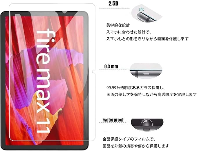 For Fire Max 11 ガラスフィルム ファイヤー マックス 11 11インチ 液晶保護強化ガラスフィルム 【larfbulroc】日本製素材旭硝子製・高硬度9H ・高透過率・耐衝撃・防塵・飛散防止・指紋防止・画面鮮やか高精細・貼り付け簡単 Fire Max11 対応