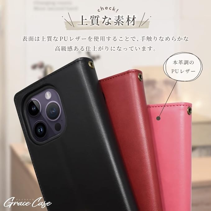 シズカウィル AQUOS wish3 docomo SH-53D Y!mobile A302SH SoftBank 楽天モバイル 手帳型 ケース カバー グレイスケース 1個入り カメリアピンク