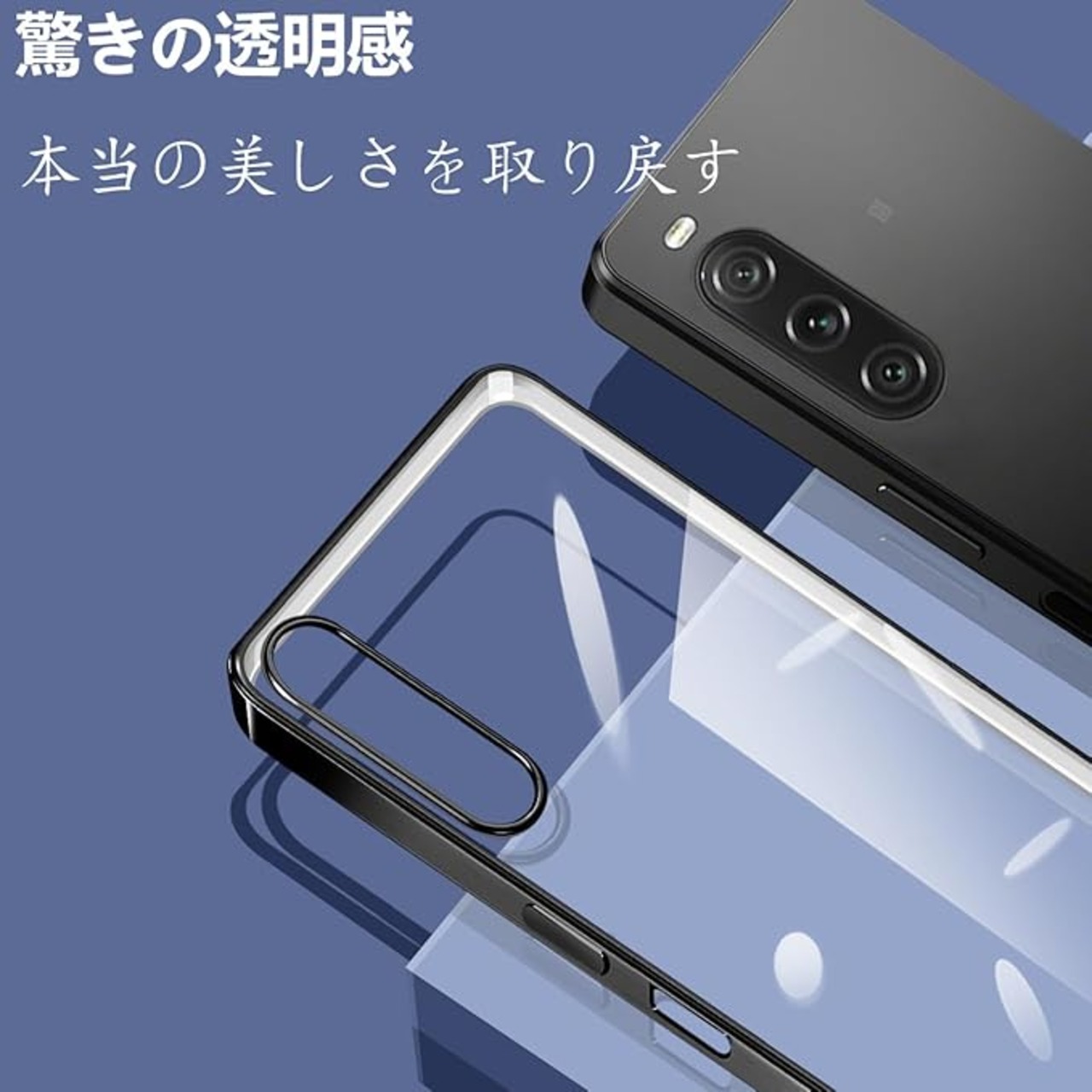 【おしゃれなデザイン】フレームは多層メッキ加工技術によって設計。透明な背面はXperia10 Vの本来の美しさを示し、フレームのメッキはよりおしゃれに感じます。透明ケースなので、Xperia10 Vの本来の美しいを楽しめます。