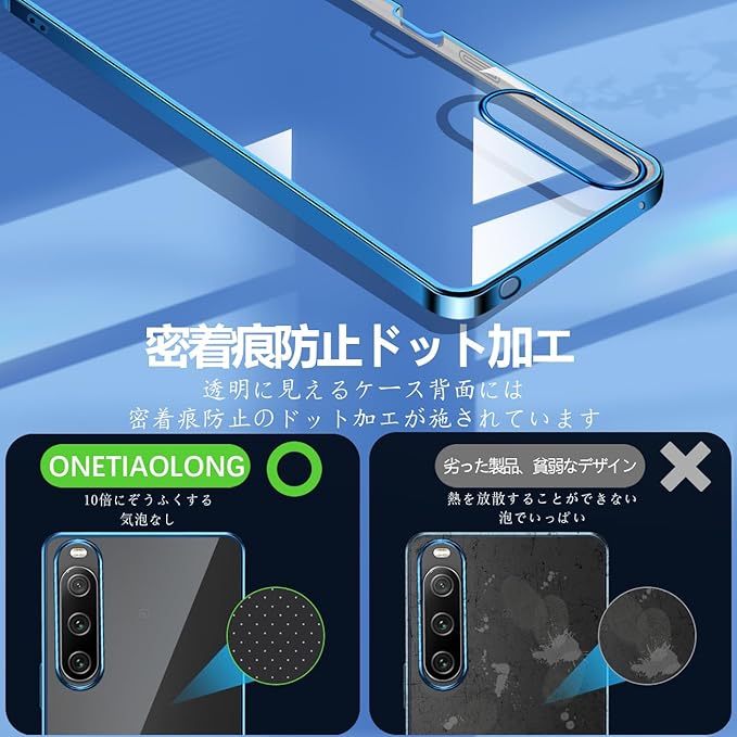 【おしゃれなデザイン】フレームは多層メッキ加工技術によって設計。透明な背面はXperia10 Vの本来の美しさを示し、フレームのメッキはよりおしゃれに感じます。透明ケースなので、Xperia10 Vの本来の美しいを楽しめます。