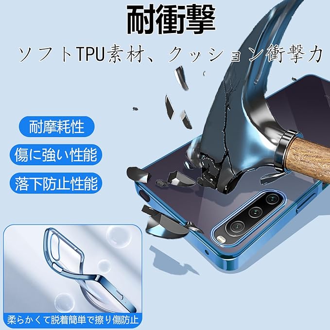 Sony Xperia 10 V ケース クリア SO-52D SOG11 透明 ガバー エクスペリア10V スマホケース 耐衝撃 メッキ加工 TPU ストラップホール付き スリム 薄型 擦り傷防止 黄変防止(ブルー)