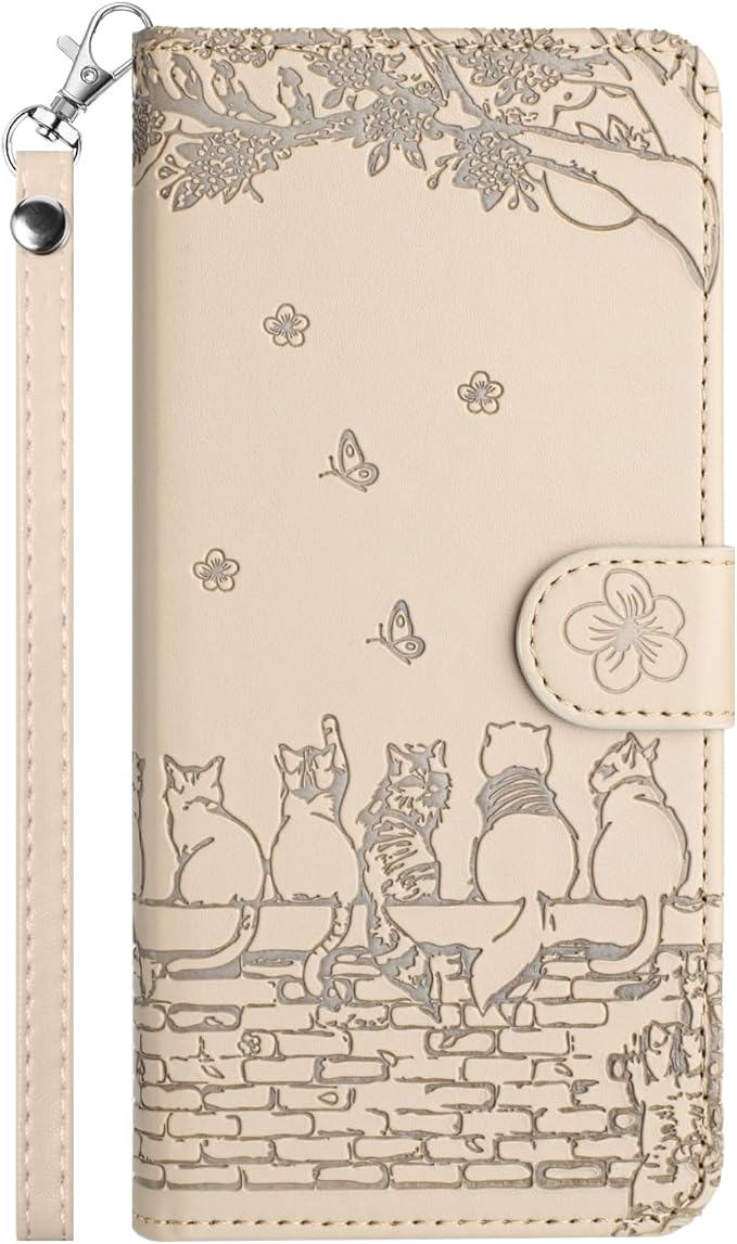 OPPO Reno7 A ケース手帳型 レザー opg04カバー手帳型 Oppo reno7 a カバー 内蔵マグネット軽量 耐衝撃 【TEDTIKJT】OPPO Reno9 A case ケース 手帳型 スマホケース 桜の下の猫 7a カード収納 スタンド機能 収納 財布型 人気 高級PUレザー 横置き機能き薄型 マグネット式 ( OPPO Reno7 A OPG04 / OPPO Reno9 A ケース, アプリコット)