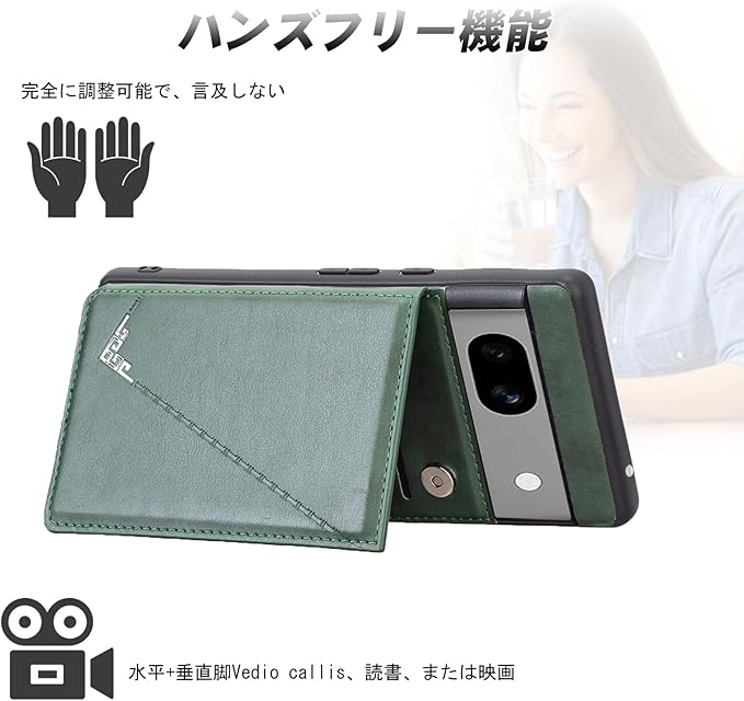 【 Antimam 】背面カード 手帳型ケース Google Pixel 7a softbank 対応 GOOGLE スマホバック?カバー ( ダークグリーン )手作り お洒落シンプル 軽量 耐久性 カード収納 スタンド機能付き 財布型 落下防止 ソフトバンク ピクセル7aケース pixel7a GREEN