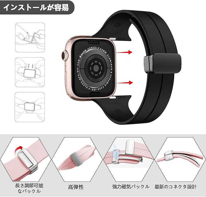 [cottzim] アップルウォッチバンド用のバンド 49mm 46mm 45mm 44mm 42mm 41mm 40mm 38mm コンパチブル アップルウォッチ 【シリカゲルストラップ 磁気吸引バックル 強力な磁】 長さ調節 通気 ソフトで汗に強く、スタイリッシュ 男女兼用 アップルウォッチ Series Ultra/Ultra 2/10/9/SE/8/7/6/5/4/3/2/1に対応