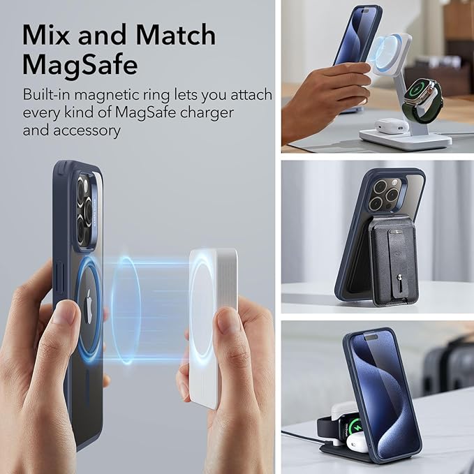 【米軍MIL規格・Magsafe対応】ESR iPhone 15 Pro ケース ワイヤレス充電対応 耐衝撃 いphone 15 pro ケース 傷防止 黄変防止 iPhone 15 Pro用 ケース アイフォン 15 プロ対応 磁気 スマホケース Classicシリーズ(クリア_ブルー)