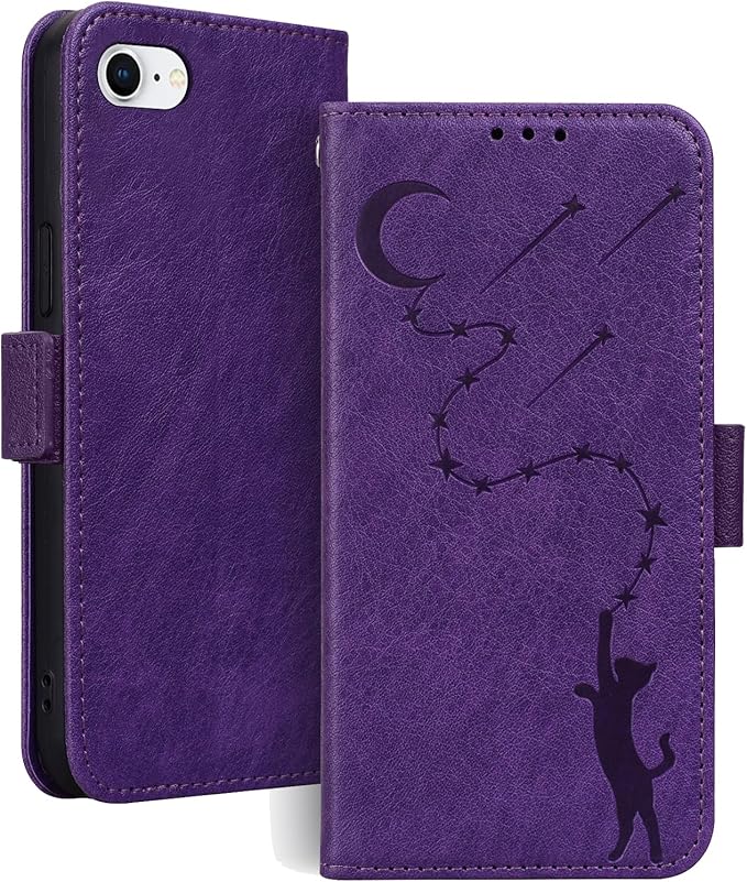 iPhone se2 se3 ケース手帳型 iphone8 ケース iPhone 7 ケース 手帳型 耐衝撃 iphone se第2世代 第3世代 ケース カード収納 iphone7財布型 カバー マグネット iphone se3 可愛い 猫柄 柔らかいTPU 全面保護 iphonese第3世代 手帳型 スタンド機能 4.7インチ対応 - 紫