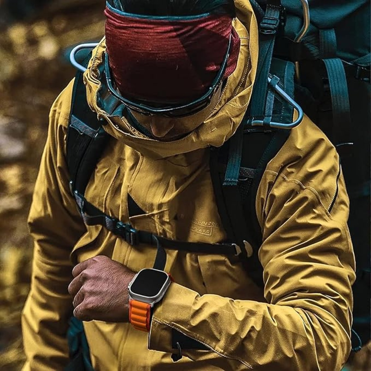 【高品質素材】このApple Watch バンドは2層のナイロン生地をシームレスに織り込むことで、腕に触れる内側はフラットで、外側には「かまぼこ」状のループが並んでいます、縫い目も切れ目もない1本のバンドに仕上げたアルパインルー