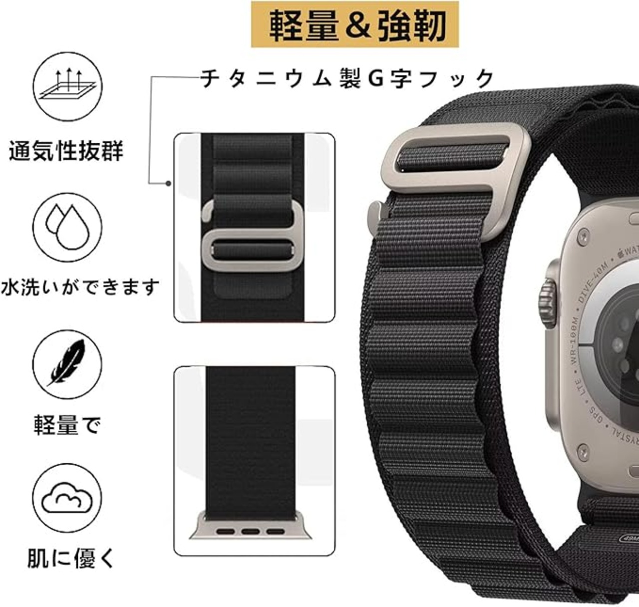 4本セット アルパインループ コンパチブル Apple Watch ultra バンド G字フック 強靭 通気性 伸縮性 柔らかい アップルウォッチ 38mm 40mm 41mm バンド ナイロンループ iWatch Series Ultra/9/8/SE/7/6/5/4/3/2/1