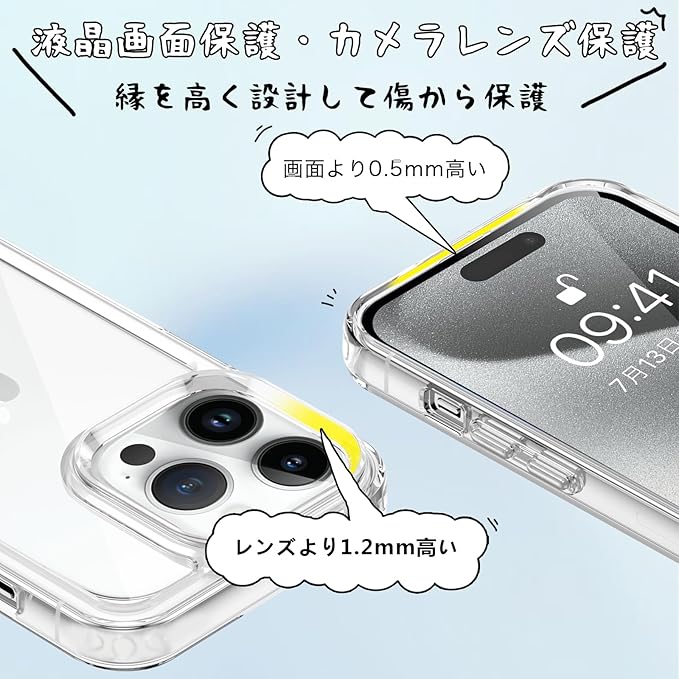 【極上の透明感・黄変防止】ケースは透き通った99%高い透明度を誇り。驚きほどの透明感、美しさをしっかりキープ、Phone本体のカラーを活かせて、背面がクリアな