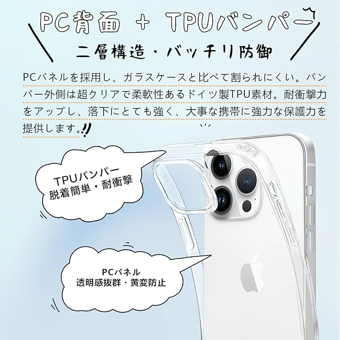【対応機種】 iPhone 15 Pro Max(6.7インチ用)に適応しています。他のデバイスには対応しておりませんので、ご注文の際はご注意ください。ケース驚きほどの透明感、美しさをしっかりキープ、Phone本体のカラーを活かせて。