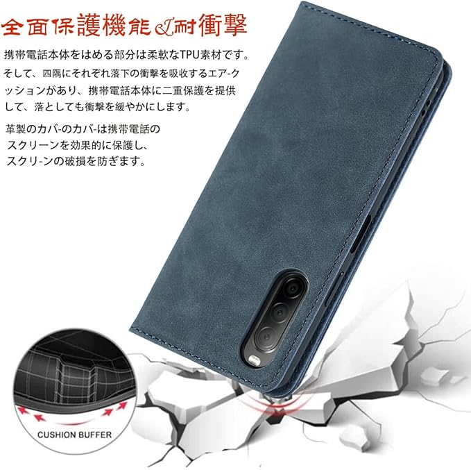 NanHou Xperia 10 V ケース 手帳型 つや消し レザー スタイル質感 SO-52D カバー 手帳型 耐衝撃 保護カバー 内蔵マグネット 財布型 SOG11 携帯カバー カードポケット スタンド機能 リストバンド Sony エクスペリア 10V 手帳型 - ダークブルー