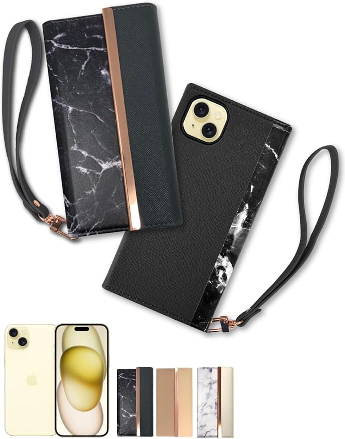 シズカウィル iPhone 15 Plus 用 手帳型 ケース カバー アイファンデ スマホケース ストラップホール ストラップ付 1個入り BLACK