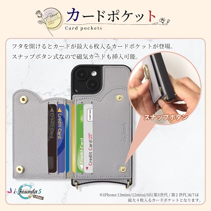 シズカウィル iPhone 15 Pro Max 用 ケース ショルダー カバー ショルダーストラップ アイファンデ5 ショルディー フルール 1個入り ネモフィラブルー