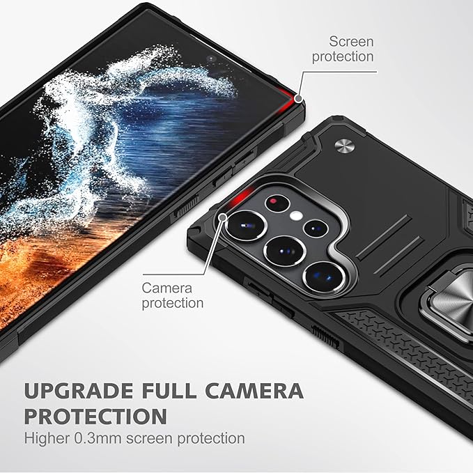 Galaxy S23 Ultra 用ケース リング付きカバー 耐衝撃 スタンド機能 車載ホルダー レンズ保護 ギャラクシーS23 Ultra 用スマホケース PC TPUバンパー 防塵 人気 落下防止 滑り止め 指紋防止 携帯カバ