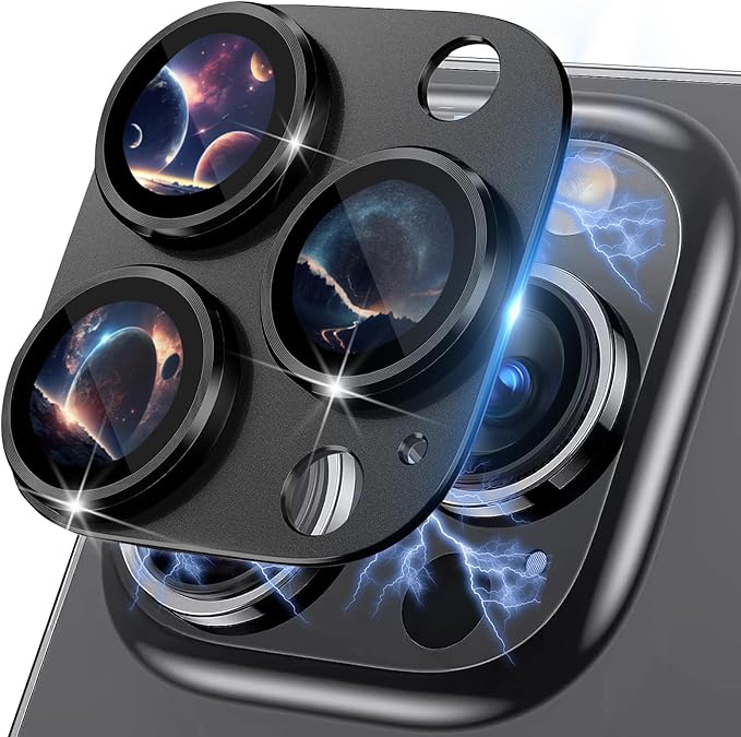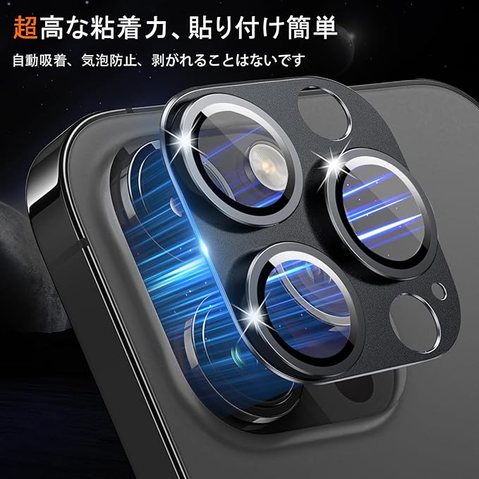 RicYeel カメラフィルム iPhone 15 Pro/iPhone 15 Pro Max 用 カメラ レンズ 保護カバー アイホン 15プロ/15プロマックス 対応 レンズ保護フィルム アルミ合金 耐スクラッチ 耐衝撃 カメラカバー - ブラック