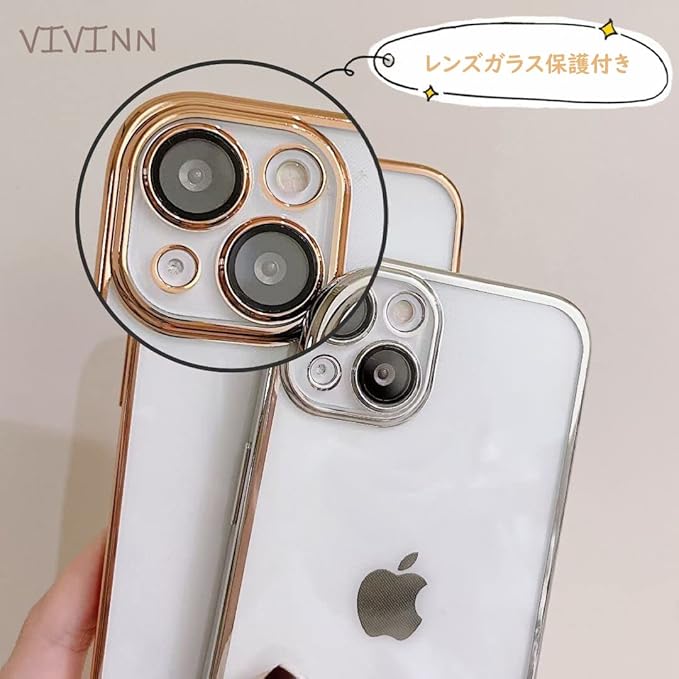 VIVINN iPhone 15 Pro ケース クリア カメラレンズ保護 ソフトケース iPhone 15 Pro ケース キラキラ シンプル 光沢 透明 クリアケース アイフォン 15プロケース 人気 大人 個性的 ストラップホール付き 超軽量 薄型 持ちやすい 携帯カバー 保護ケース(iPhone15Pro,ピンク)