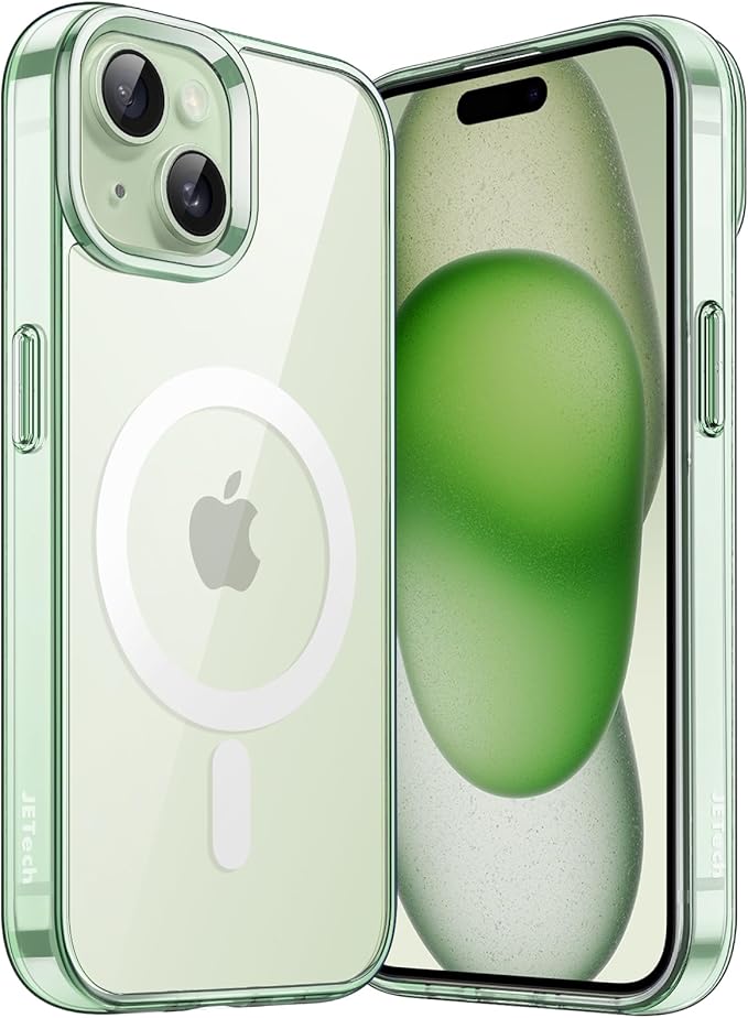 JETech iPhone 15 6.1インチ用 マグネット ケース MagSafe ワイヤレス充電対応 衝撃吸収 バンパーカバー 傷つけ防止 透明バック (グリーン)