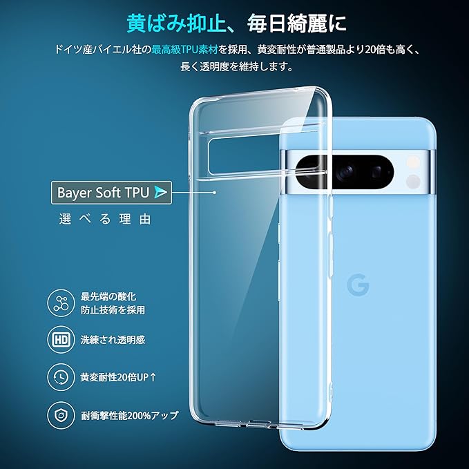 √【対応機種】Google Pixel 8 Pro ケース。美しさと耐衝撃性を兼ね備えた理想的なソフトクリアケース。