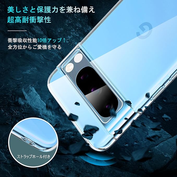 Google Pixel 8 Pro 用 ケース クリア 薄型 ドイツバイエル製TPU素材 超耐衝撃 全透明 黄変防止 レンズ保護 指紋防止 「ストラップホール付き」 ピクセル8Pro 用カバー クリスタル・クリア