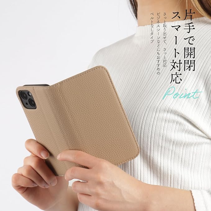 HANATORA iPhone12 ケース 手帳型 本革 スマホケース スマホ スタンド ストラップ 付き シュリンクカーフレザー ギフト ベルトあり マグネットなし グレージュ H0XB-12-Grege ギフト 誕生日ギフト 女性 彼女 お母さん お父さん 人気商品 30代 40代 50代 60代 70代