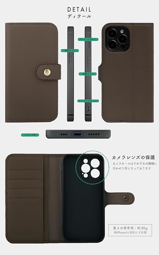 HANATORA iPhone13ProMax ケース 手帳型 本革 スマホケース スマホ スタンド ストラップ 付き シュリンクカーフレザー ギフト ベルトあり マグネットなし ブラック H0XB-13ProMax-Black