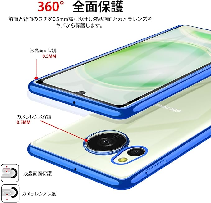AQUOS sense8 ケース クリア 透明 SH-54D SHG11 カバー スマホケース 薄型 tpu 耐衝撃 ストラップホール スリム ソフト 青 メッキ加工 アクオス センス8 ケース ブルー