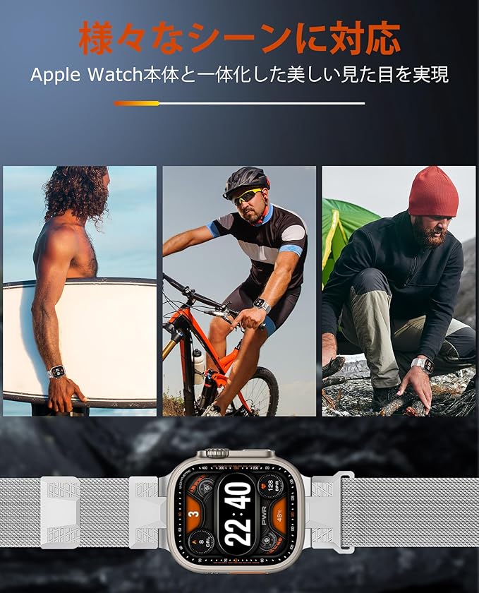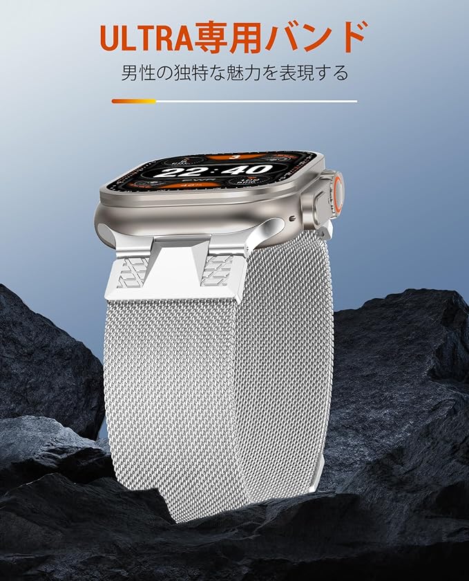 コンパチブル Apple Watch バンド/アップルウォッチ バンド 42mm 44mm 45mm 49mm 機甲スタイルマグネットクラスプ テンレス留め金製 磁石 無段階調節 男性メンズ専用交換ベルト iWatch Series Ultra 2/Ultra/SE2/SE/9/8/7/6/5/4/3/2/1に対応(シルバー)