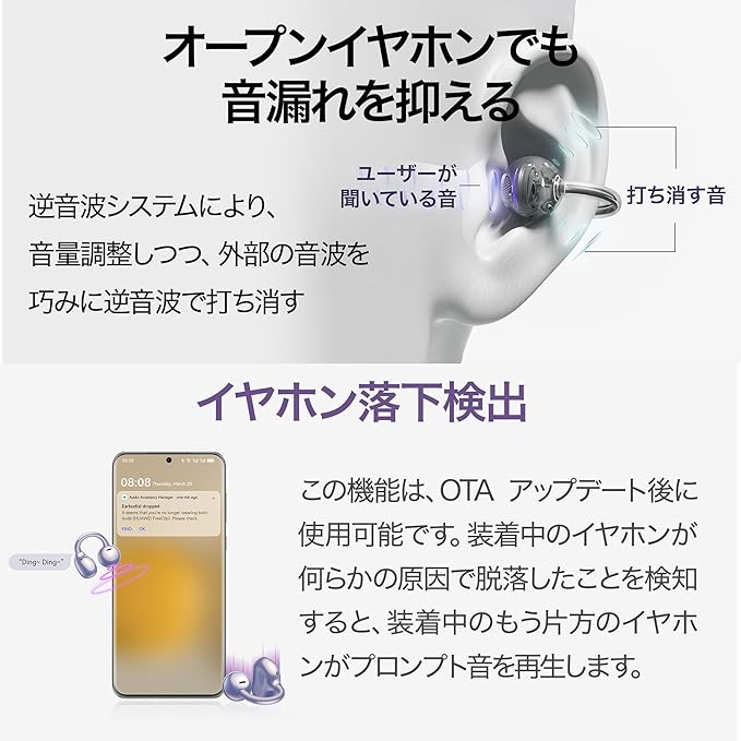 HUAWEI FreeClip ワイヤレスイヤホン Bluetooth オープンイヤー イヤーカフ型 3段階音量調整 耳を塞がないイヤホン 軽量約5.6g(本体) 音漏れ防止 マイク付き 通話ノイズリダクション 36時間再生 左右自動認識 IP54防塵防滴 ワイヤレス/急速充電 マルチポイント接続 ブラック