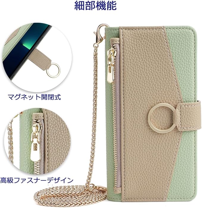Aquos R3 ケース AQUOS R3 SH-04L ケース AQUOS R3 SHV44 カバー CNEVISON スマホケース 化粧鏡付き カード収納 スタンド機能 ストラップ付き 肩掛ショルダー Aquos R3 手帳型ケース 耐汚れ 耐衝撃 おしゃれ 高級PUレザー 2色組合せ 携帯ケース (カーキ&グリーン, Aquos R3)