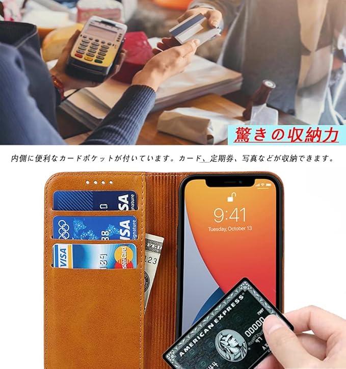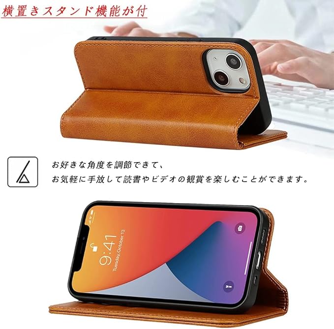 横置きスタンド機能が付いて、好きな角度で動画鑑賞や読書などを楽しめます、財布型ケースとして、ICカード、名刺やお札などを入れるカードポケットがつき、日常生活に便利です。