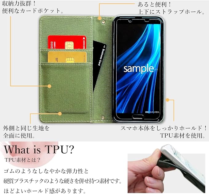 カードポケット収納、動画視聴に便利なスタンド機能付き